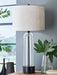This table lamp is an illuminating mix of versatile form and modern function. Luxe black accents are complemented by clear glass, with a white drum shade topping off the look. Easily paired with aesthetics ranging from casual to contemporary, this lamp epitomizes stylish simplicity.