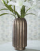 Si el estilo contemporáneo se adapta a tus gustos en cuanto a diseño, este jarrón te cautivará con su estética impecable. Un impresionante acabado de vidrio de mercurio y un diseño acanalado lo convierten en un deleite visual. Esta exquisita pieza se destaca sin esfuerzo por sí sola, o puedes acentuar su belleza llenándola con tus flores favoritas.