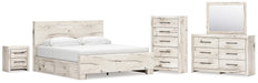 Lawroy King Panel Bed with Storage, Dresser, Mirror, Chest and Nightstand