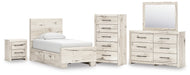 Lawroy Twin Panel Bed with Storage, Dresser, Mirror, Chest and Nightstand