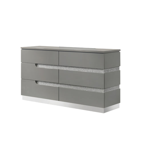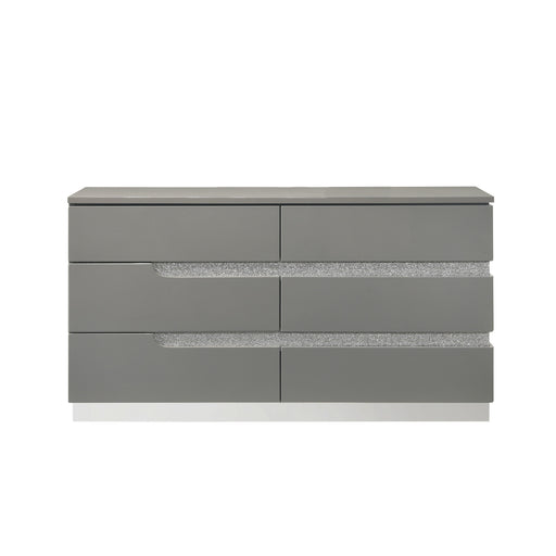 Vivian's Quality FurnitureThe Paradox Six Drawer Dresser in Gray combines contemporary appeal with robust functionality. Its gleaming Gray gloss laminate finish offers a sle...