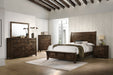The Blue Ridge 9 Drawer Dresser by New Classic Furniture epitomizes eco-friendly sophistication. Crafted from reclaimed solid wood sourced from various origins, this dresser embodies environmental responsibility and sustainability. The naturally timeworn appearance, showcasing unique traits like nail and bolt holes, bug holes, water and mineral staining, checking, and open knots, ensures each piece's distinctiveness. The solid strength of reclaimed wood, seasoned through years of use, is further enhanced with a finger joining technique, allowing for the creation of expansive and enduring surfaces. The multi-step finish, featuring rustic brown with gray undertones and charcoal glazing, enhances the heavily distressed design. With effortless drawer operation, clean and carefree storage including felt-lined top drawers, and time-tested quality utilizing four-corner English dovetail joinery, this dresser marries practicality with durability. Compliant with safety standards and backed by a 1-year limited warranty, the Blue Ridge Dresser offers an attractive and environmentally conscious addition to your bedroom.