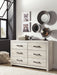 Qué encantadora interpretación del estilo industrial rústico. Ya sea un loft moderno o una casa de campo moderna, esta cómoda se adapta a tu hogar. La tenue paleta de blancos realza sin cubrir la veta para lograr ese aspecto desgastado que tanto deseas. Los tiradores alargados de los cajones realzan la estética.