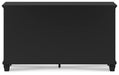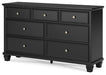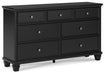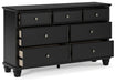 | Detalles | Fabricado con maderas duras macizas, chapa de abedul y sustrato de MDF, acabado pintado de negro, 7 cajones de deslizamiento suave con construcción de cola de milano y guías laterales con cojinetes de bolas, perillas de cajón de metal redondas con acabado en tono níquel satinado, frentes de cajón enmarcados, patas cónicas | |