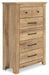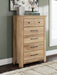 Looking to create a bedroom that feels airy and beautifully put together? This casually comfy chest of drawers is your perfect solution. Its clean lines and on-trend natural finish exude a charming cottage-inspired feel that brightens your restful retreat. Spacious drawers with dark bronze-tone knobs stow away clothes and more. Now there’s a fresh take on country living we can get behind.