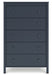| Detalles | Fabricado con madera de ingeniería (MDF/tablero de partículas/madera contrachapada) y laminado decorativo para lograr el equilibrio adecuado entre asequibilidad y durabilidad, Acabado azul marino mate, El laminado decorativo replica superficies de materiales naturales o artificiales con un color, patrón y textura uniformes, Perillas con acabado azul marino mate, 5 cajones de deslizamiento suave con lados y parte posterior envueltos en vinilo para mayor durabilidad, La seguridad es una prioridad máxima, las unidades de almacenamiento de ropa están diseñadas para cumplir con el estándar más actual de estabilidad, ASTM F 2057 (ASTM International), Los cajones se extienden para permitir el máximo acceso al interior del cajón mientras se mantiene la seguridad, Requiere ensamblaje | |