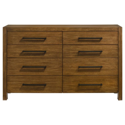 CoasterDresser with eight drawers and stout posts brings modern rustic order to the bedroom. A warm wood tone highlights the grain across clean drawer fro...