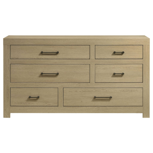 CoasterThis dresser anchors the bedroom with a wide, grounded silhouette and bold live-edge drawer fronts. A weathered oak finish and oak veneer surfaces ...
