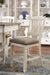 | Detalles | Fabricado en madera maciza, Acabado blanco envejecido, Asiento tapizado en tela tejida gruesa, Requiere ensamblaje | |