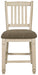La belleza de este taburete de bar tapizado es digna de admirar. Diseñado para brindar comodidad y estilo, este taburete de bar con respaldo inclinado atrae con un asiento acolchado cubierto con una tela tejida pesada que complementa el acabado blanco envejecido.