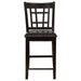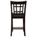 Enhance your dining space with this sophisticated counter-height chair. Crafted with a sturdy solid wood frame in a rich espresso finish, it exudes timeless charm. The open grid backrest design adds a touch of modern elegance, while the black faux leather upholstered seat provides plush comfort and easy maintenance. Designed for durability and support, built-in footrests ensure added stability. This versatile chair is perfect for pairing with counter-height tables or kitchen islands.