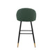 The Oliver Green Faux Leather Bar Chair set combines contemporary style with practical features to enhance any modern space. Each set includes two bar chairs with a sleek, arched back and low profile, offering a chic yet refined aesthetic. Crafted from eco-friendly vegan leather, the chairs deliver the luxurious look of leather without the maintenance, with intricate diamond tufting for added sophistication. The sturdy, tapered black iron legs provide excellent stability, resisting bending or breaking, and are accented with subtle gold detailing for a touch of elegance. Dual-purpose footrests ensure both added stability and a comfortable spot to rest your feet. A perfect blend of style and functionality, these bar chairs offer long-lasting comfort and timeless design—an excellent addition to any home or bar setting.