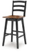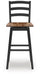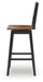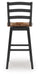 Details Made with solid wood frame, Seat with butcher block veneer pattern in deep brown wood-tone finish, Frame with warm satin black finish, Contoured seat, 360-degree swivel, Footrest for added support, Assembly required