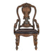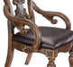 The grand scale of the Bergen Collection invokes a timeless aesthetic for your home�s traditional dining room. The armchair�s dark oak finish highlights the distinct oak veneer with a dark brown faux leather upholstered seat provides complementing contrast. Traditional accenting abounds throughout the chair with legs that feature classic routing, moldings, and decorative pediments gracing the design.