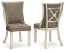 La belleza de esta silla de comedor tapizada es digna de admirar. El asiento contorneado lo acuna con una comodidad acolchada, mientras que el detalle de celosía en el respaldo hace que esta sea una silla llamativa desde todos los ángulos. La tela tejida gruesa agrega un interés texturizado que complementa el acabado blanco envejecido de la silla.