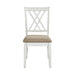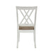 As inviting as a country kitchen, the Brunson Collection�s charming design is a blend of traditional lines and casual comfort, creating the perfect arrangement for your casual dining room. The white finish over oak veneer is the perfect canvas for your modern farmhouse d�cor. The double x-back wood-framed side chair features a neutral tone fabric seat for complementing contrast to the collection�s finish.