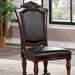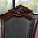 A perfect fit for those looking for a traditional piece, this dining set brings the right amount of grandiose. This chair has upholstered seat and back cushions with black leatherette and nailhead trim. It shares the same faux wood carvings and metal details with the rest of the set--subdued baroque influences that make it surely stand the test of time.