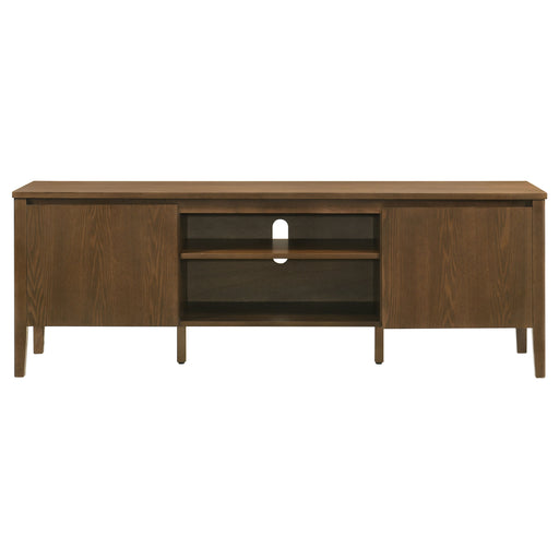 Coaster63-inch TV stand with SmartTop high-pressure laminate surface delivers durable performance for everyday media use. Two cabinet doors flank an open ...
