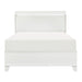 The visually stunning Kerren Collection is a modern study on line and light. LED enhances top rail of the full bed. Providing additional eye-catching drama is the white opalescent faux leather headboard, shimmering in the glow of the LED light.