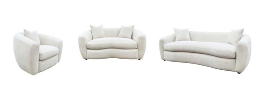 CoasterThree-piece sofa set creates a coordinated living room arrangement with sofa, loveseat, and accent chair wrapped in textured chenille upholstery. R...