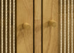 • Natural accent cabinet offers three-door storage with rope panel texture and round pulls