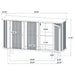 • Interior shelving keeps dinnerware, linens, and bar essentials organized behind closed doors