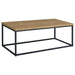 • Coffee table set combines rectangular surfaces with open black metal frames for a clean industrial look