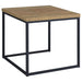 This coffee table set introduces a clean, industrial-inspired presence to the living room with its balanced mix of warm wood tone and crisp metal structure. Rectangular tops finished in a mango wood-look surface rest within slim black metal frames that create a light, open profile. Crafted with engineered wood and laminate veneer over supportive metal bases, the design keeps the look simple and grounded. The coordinated coffee table and end tables offer a cohesive centerpiece for everyday living and casual entertaining.