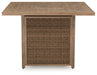 | Detalles | Incluye mesa para fogata a gas con quemador de acero inoxidable de 55,000 BTU aprobado por CSA, cuentas de vidrio, cubierta del quemador y cubierta protectora para todo clima, mimbre de resina para todo clima tejido sobre marco de aluminio, acabado de madera flotante, herrajes de acero inoxidable, sistema de encendido a batería con control de llama ajustable; batería incluida, la puerta del gabinete oculta el tanque de gas propano (no incluido), asientos para hasta 8 (los taburetes de bar se venden por separado), requiere ensamblaje, conexión al tanque de propano o manguera de conexión no provista | |