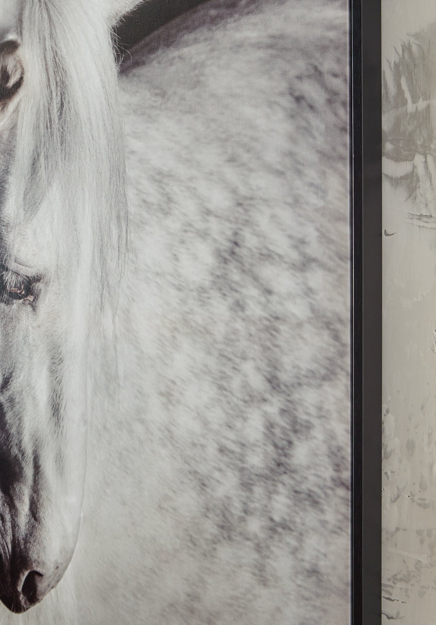 Este cuadro es un complemento muy detallado para la decoración de tu pared. La gradación de color en blanco y negro añade un aire de elegancia al retrato. Es una interpretación elegante de la belleza equina, tanto para espacios casuales como contemporáneos.