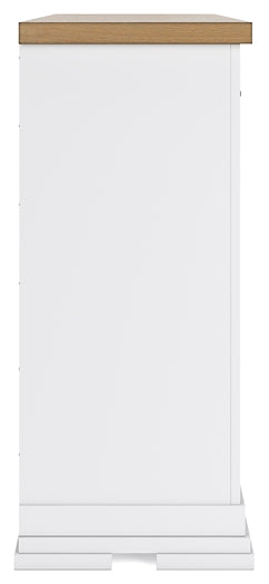 Estilo informal con sustancia. Esta cómoda de dos tonos eleva el nivel del diseño cómodo y acogedor en su santuario relajante. Una silueta robusta con un acabado blanco clásico y herrajes de metal negros transmite un aire de granja moderna. La parte superior de chapa de roble con forma de bloque de carnicero aporta una estética relajada. Y esta pieza cuidadosamente seleccionada es lo suficientemente espaciosa para todos sus elementos esenciales.