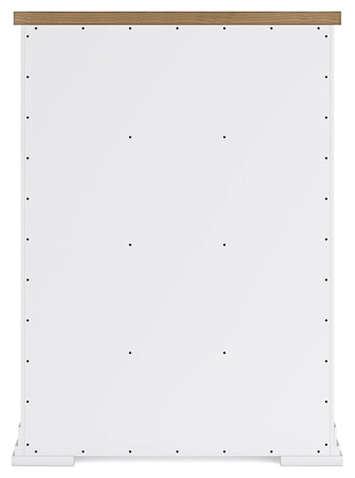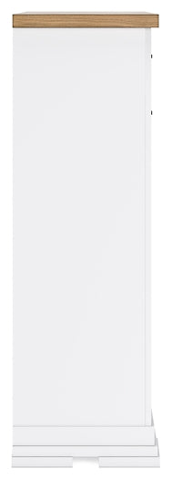 Estilo informal con sustancia. Esta cómoda de dos tonos eleva el nivel del diseño cómodo y acogedor en su santuario relajante. Una silueta robusta con un acabado blanco clásico y herrajes de metal negro exuda un aire de granja moderna. La parte superior de chapa de roble en forma de bloque de carnicero agrega una estética relajada. Y esta pieza seleccionada con encanto es lo suficientemente espaciosa para todos sus elementos esenciales.