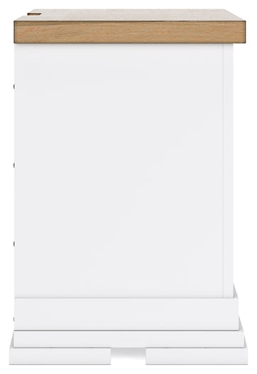 Estilo informal con sustancia. Esta mesita de noche de dos tonos eleva el nivel del diseño cómodo y acogedor en su santuario relajante. Una silueta robusta con un acabado blanco clásico y herrajes de metal negro exuda un aire de granja moderna. La parte superior de chapa de roble en forma de bloque de carnicero agrega una estética relajada. Y cargar sus dispositivos favoritos junto a la cama es fácil con tomas de corriente y puertos USB.