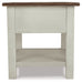 Ya sea que su estilo sea rústico, shabby chic o rural, encontrará que esta mesa auxiliar está diseñada para impresionar. Su acabado en dos tonos, ligeramente envejecido, combina el roble desgastado con el blanco antiguo para lograr un carácter mucho más pintoresco. Los elementos encantadores incluyen una parte superior estilo tablones y marco, herrajes facetados negros y un cajón de deslizamiento suave para controles remotos y más.