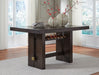 Esta mesa de comedor alta, diseñada para emocionar, ofrece un estilo de alto diseño a un precio razonable. Las líneas ultra elegantes se acentúan con un acabado en tono roble marrón ceroso oscuro que es muy agradable a la vista. Un tablero grueso y una base de pedestal con botellero integrado muestran la calidad de la artesanía y la atención al detalle. De líneas limpias y modernas, esta mesa atemporal tiene un estilo hecho para durar.