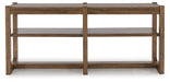 Esta mesa de sofá se encuentra en una cómoda intersección entre la estética de una cabaña moderna y una casa de campo. Su disposición cálida y acogedora se refleja en los encantadores elementos arquitectónicos y el acabado esmaltado en marrón claro. Incluso con su aplomo, esta mesa sigue siendo práctica. Con su diseño multifuncional, funciona como un impresionante soporte para TV o como una estantería en la oficina.