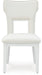 Esta silla de comedor, que adopta el glamour moderno, es una incorporación deslumbrante a su comedor. Un acabado lacado en blanco brillante y un diseño calado contemporáneo le dan un estilo propio. La suntuosa tapicería sorprende con detalles de hilo metálico.