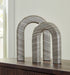 Este conjunto de esculturas, de silueta arquitectónica atemporal, realza su decoración con la belleza de la piedra natural. La construcción de mármol gris topo es clásica y contemporánea a la vez. Estas piezas, que se muestran juntas o se colocan por separado, mantienen un aspecto refinado.