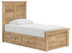 Looking to create a bedroom that feels airy and beautifully put together? This casually comfy twin panel storage bed is your perfect solution. Its clean lines, replicated oak grain and on-trend natural finish exude a charming cottage-inspired feel that brightens your restful retreat. Spacious drawers with dark bronze-tone knobs stow away clothes and more. Now there’s a fresh take on country living we can get behind.