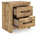 Details Made with engineered wood (MDF/particleboard/plywood) and decorative laminate for the right balance of affordability and durability, Golden rustic finish over replicated oak grain with authentic touch, Decorative laminate replicates natural or man-made material surfaces with consistent color, pattern and texture, Hardware with dark pewter-tone finish, 2 smooth-gliding drawers, Assembly required
