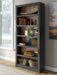 Raise the bar on modern farmhouse style with this home office bookcase. Its casual good looks are accentuated with a two-tone finish, which pairs a warm satin black with a butcher block veneer back in a contrasting rich brown wood tone. Six shelves—four of which are adjustable to fit your needs—are perfect for storage and displaying decor, bringing both form and function to your office.
