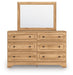 Details Includes dresser and mirror, Made with engineered wood (MDF/particleboard/plywood) and decorative laminate for the right balance of affordability and durability, Warm replicated oak grain finish, Decorative laminate replicates natural or man-made material surfaces with consistent color, pattern and texture, Dark nickel-tone knobs, 6 smooth-gliding drawers, Drawer interiors are lined with a faux linen laminate for a clean, finished look, Mirror attaches to back of dresser; can also be mounted on wall horizontally or vertically, Safety is a top priority, clothing storage units are designed to meet the most current standards for stability, ATM F 2057 (ASTM International) , Drawers extend out to accommodate maximum access to drawer interior while maintaining safety, Minor assembly required
