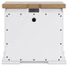 | Details | B844B5: Includes panel headboard, storage footboard, rails and roll slats, Footboard made with hardwood solids, MDF substrates and butcher block oak veneer, Headboard and rails made with hardwood solids and MDF substrates, White finish, Headboard with inset black metal barn sash, 2 drawers in footboard with fully finished interior, dovetail construction and ball-bearing side glides, Pulls with matte black finish, Bed does not require a foundation/box spring, Mattress available, sold separately, Assembly required, B844B1: Includes dresser and mirror, Made with hardwood solids, MDF substrates and butcher block oak veneer, Dresser with 2-tone finish (white finish; butcher block oak veneer with natural finish), Pulls with matte black finish, 10 spacious drawers with fully finished interiors (top drawers felt lined), dovetail construction and ball-bearing side glides , Drawers with inset picture fronts, Mirror attaches to back of dresser, B844-93: Made with hardwood solids, MDF substrates and butcher block oak veneer, 2-tone finish (white finish; butcher block oak veneer with natural finish), Pulls with matte black finish, 3 spacious drawers with fully finished interiors (top drawers felt lined), dovetail construction and ball-bearing side glides, 110V power supply with dual USB charging ports, Power cord included; UL Listed, Drawers with inset picture frame fronts, | |
