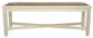The beauty of this upholstered dining bench is something to savor. Serving up comfort and flair, this generously scaled bench entices with a cushioned seat covered in a heavy woven fabric that complements the antiqued white finish.