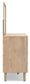 Clean-lined and contemporary—but far from stark—this dresser with mirror is a fresh style awakening. Pairing a light finish with replicated oak grain and textured beige details that replicate the look of cane, its mixed materials bring a naturally versatile vibe to your bedroom. Prepare to have your mind blown by the vast universe of possibilities that await within the spacious drawers. Whether you're prepping for work or getting ready to hit the town, the mirror will have you looking fabulous from every angle.
