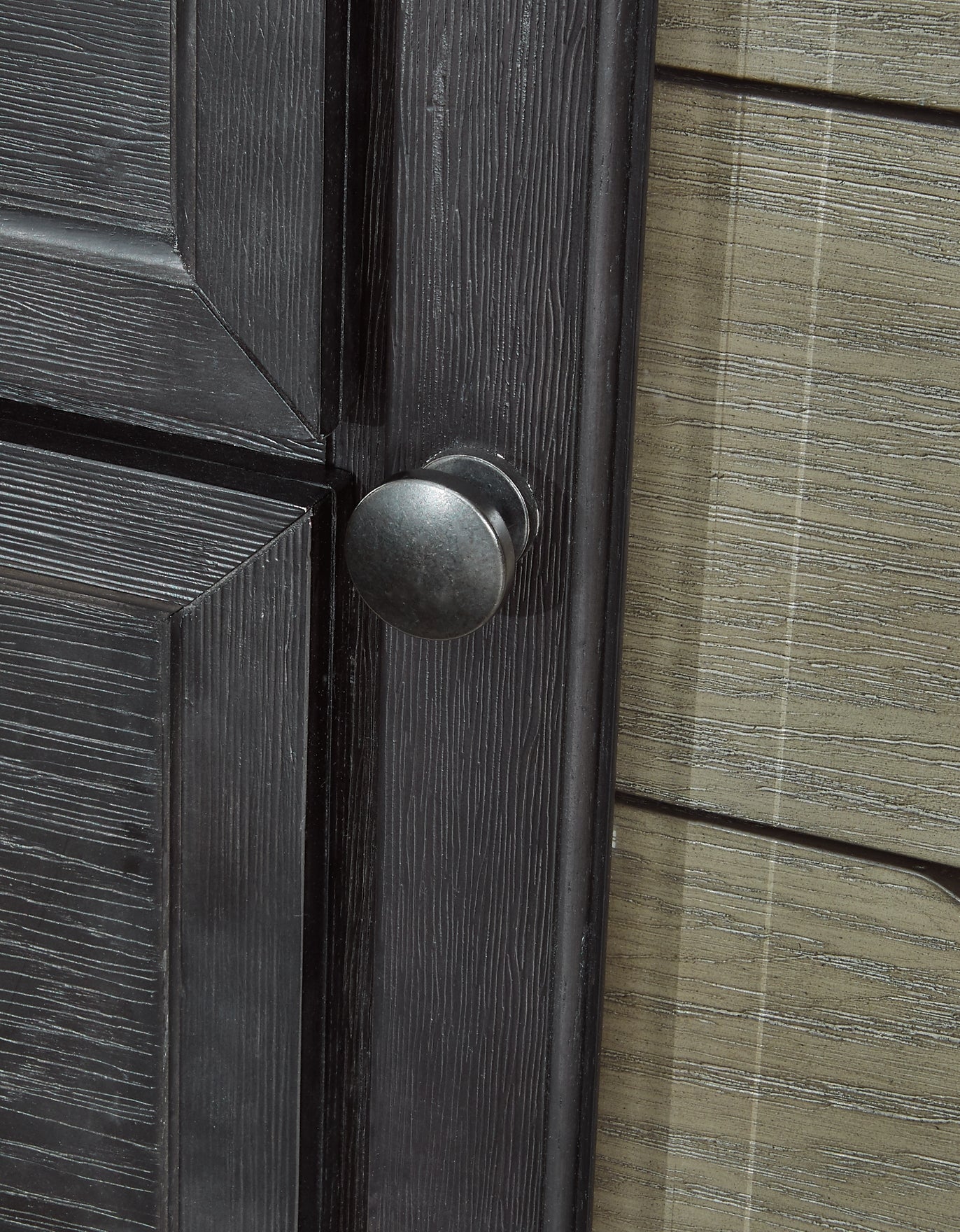 | Details | Includes dresser and mirror, Made with hardwood solids, select oak veneers and engineered wood, Two-tone finish (brushed black and dusty grayish brown wood tone), Sleek drawer pulls with black finish, 11 soft-close, smooth-gliding drawers with fully finished interiors and dovetail construction (top drawers felt lined), 5 drawers with brushed black finish; 6 drawers with grayish brown wood tone, 3 drawers located behind each door, Mirror mounts to back of dresser, Assembly required | |