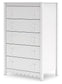 | Details | Made with engineered wood (MDF/particleboard/plywood) and decorative laminate for the right balance of affordability and durability, Decorative laminate replicates natural or man-made material surfaces with consistent color, pattern and texture, Matte white finish, 5 smooth-gliding drawers with vinyl-wrapped sides and back for durability, Safety is a top priority, clothing storage units are designed to meet the most current standard for stability, ASTM F 2057 (ASTM International), Drawers extend out to accommodate maximum access to drawer interior while maintaining safety, Assembly required | |