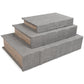 This set of three keepsake boxes makes storage so quietly understated. The gray cover is complemented inside with a black velvet lining. The perfect place for your dearest keepsakes, this set adds a touch of casual elegance to your decor.