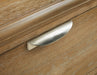 | Details | Made with rubberwood solids, oak veneer and MDF substrates, Light oak finish with light wire-brushed wood grain texture, Bin pulls with silvertone finish, 2-door cabinet with glass insert and adjustable shelf, 2 center drawers with fully finished interior, dovetail construction and ball-bearing side glides, Softly shaped posts, Thick cove profiled top, Cutouts for wire management, Minor assembly required | |